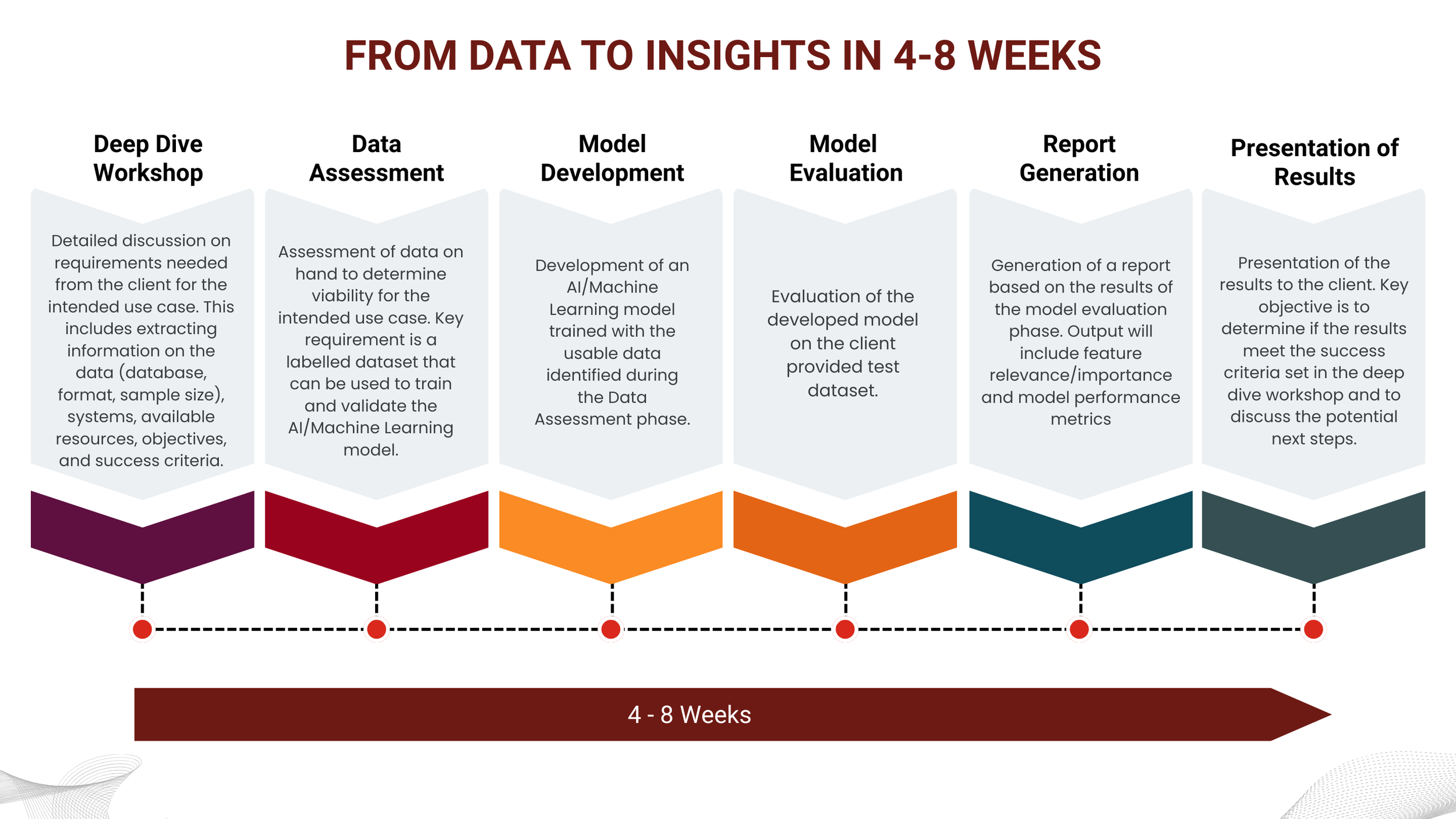 We'll chart a clear path forward, mapping out impactful use cases, timelines, resources, and the skills needed to bring your data science vision to life.